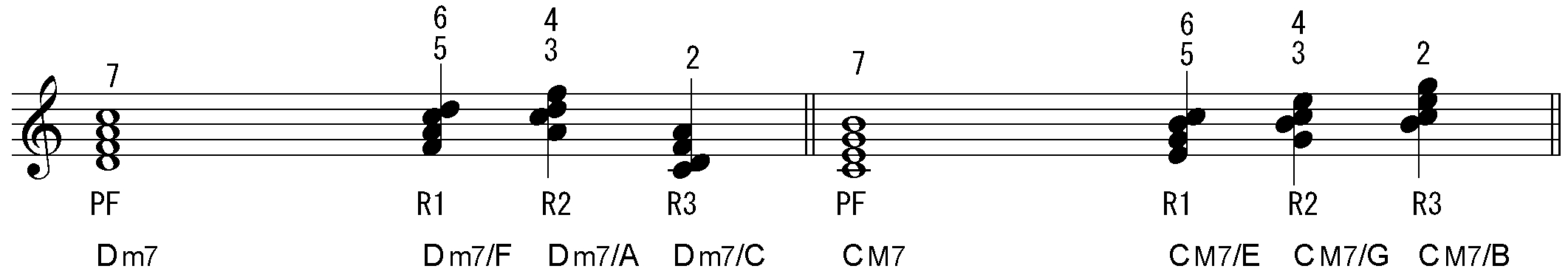 ですが、今回確認するメジャー・セブンスとマイナー・セブンスを見ると、この推測も外れていそうです。数字の付け方は依然謎です。