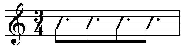 ともかく、3/4の小節を付点8部で区切って4拍子にしているってことが、一目で分かる書き方のような気がするのですが、どうも一般的にはこういう書き方ってダメらしいんですよね。