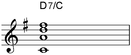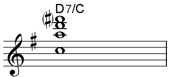 - 「7」が添えられれば、ルートから見たm7が付加される。ex1) "C7"のコード・ノートはC E G Bb。"Cm7"の場合、"Cm"が示すマイナー・トライアドに、「7」が示すm7が付加されるため、分節の仕方として"C-m7"と捉えるのは誤り、"Cm-7"が正しい。ex2) "Caug7"のコード・ノートは、"Caug"のC E G#に「7」が示すm7であるBbが付加される。