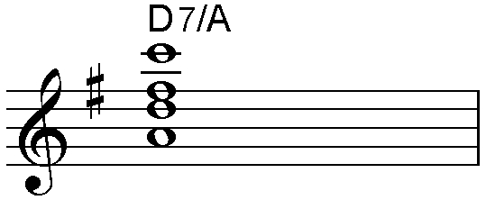 - ルートとなる音名を大文字で記し、単独で表記されればメジャー・トライアドを表す。ex) "C"であれば、ルートがCで、コード・ノートはC E G