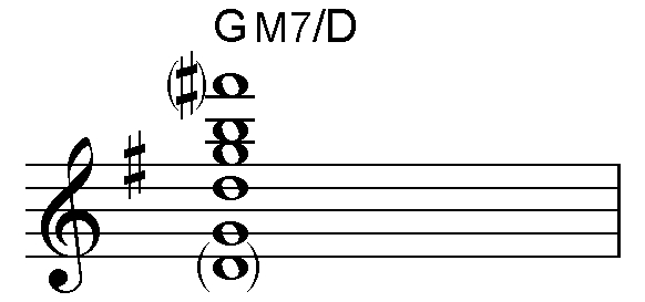 今回はGメジャー・スケール上に構成されるコードの続きで、リーディング・ノートがM7のF#、及びルートのGとなる場合のコード・シェイプを確認していきます。