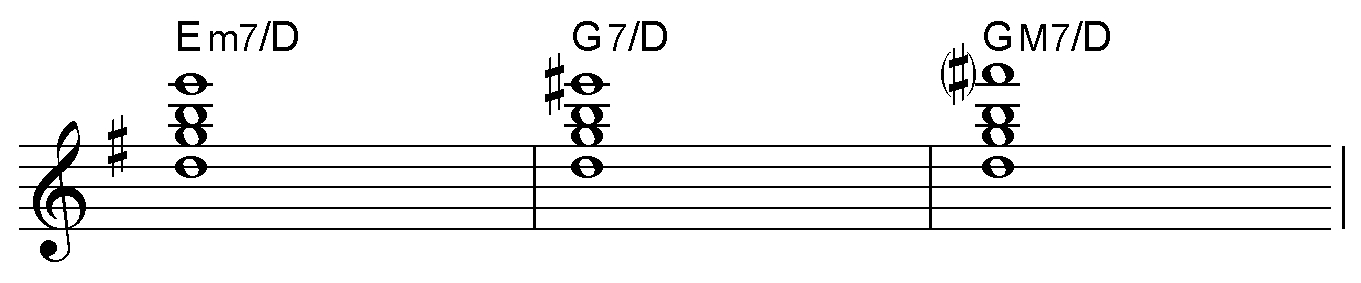 今回はGメジャー・スケール上に構成されるコードの続きで、リーディング・ノートがb5のDb、及びP5のDとなる場合のコード・シェイプを確認していきます。
