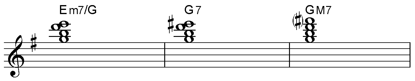 今回はGメジャー・スケール上に構成されるコードの続きで、リーディング・ノートがM3のBのコード・シェイプを確認していきます。