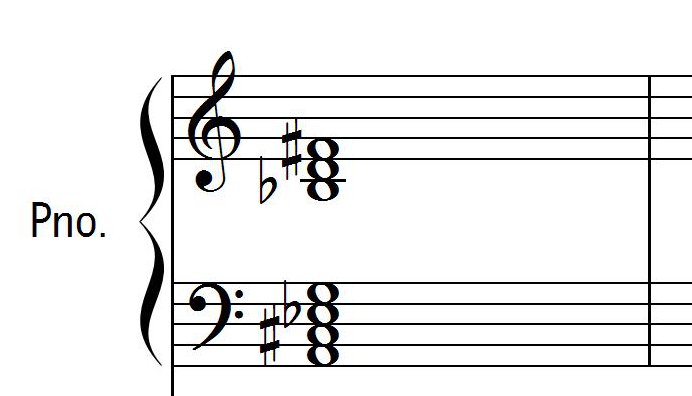 トライトーンをなす二つの楽音に矢印を付けていた